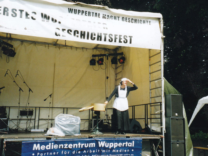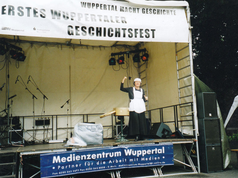 „Mina Knallenfalls – ein Denkmal wird lebendig“: Aufführung des von Anna-Maria erstellten Stücks in der Bandfabrik in Langerfeld und in der ehemaligen Textilfabrik Huppertsberg am Ostersbaum