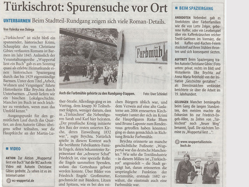 Zu Wuppertal liest ein Buch - „Türkischrot“. Stadtspaziergang durch Unterbarmen, begleitet von der Autorin Christiane Giebiec.